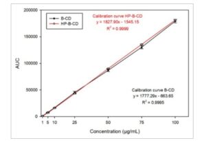 Secara keseluruhan, setelah 30 hari, persentase ALA yang diinklusi dengan β-CD menunjukkan stabilitas yang lebih baik dibandingkan dengan HP-β-CD, terutama saat disimpan pada suhu ekstrem. Oleh karena itu, kami terus berupaya menginklusi ALA dalam β-CD.